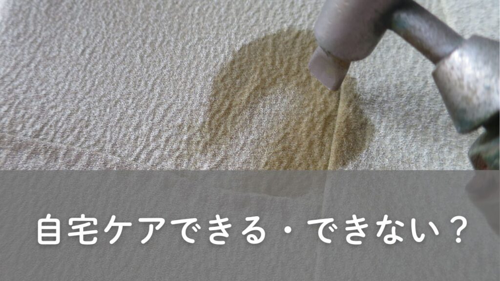 軽い汚れや、ポリエステル着物など扱いやすい素材の場合は、自宅でもケアできることがあります。